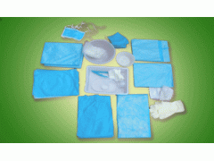 普通型基本配置:手术衣、口罩、帽子、垫,选用配置:包布、洞巾、治疗巾、裤腿、手套、纱布块、棉球、袖头、棉垫、鞋套、棉垫、棉签、中单、腹带、脐带夹、脐带卷、脐带扎、脐带包、脐带绳、刀片、吸痰器、缝合针、非吸收缝合线等;