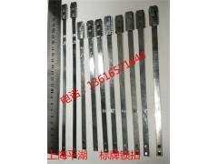 供应钢材挂钩,采用优质低碳钢丝,手感圆滑不刮手.适用与钢铁行业.基本满足国内螺纹钢,高线,等生产线的生产条件,实现下线即能悬挂,保证产品信息的准确,挂好牌以后不容易脱落,保证了标牌在产品出厂之后的美观及信息的完整,选择宁波镭克公司的钢材挂钩,满足苛刻的要求,保证最优惠的价格!欢迎定货.质量保证。钢筋标牌吊钩,宝钢吊牌钩,铁皮扣,捆扎锁,吊牌锁扣的用途:螺纹钢筋出厂前,为避免弄错规格型号及材质等